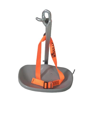 Assento anatômico confeccionado em Polipropileno, Estrutura confeccionada em ferro com tratamento superficial zincado Cinto de segurança, Gancho metálico para suporte de material ou Ferramentas, Alavanca de liberação de descida emborrachada Capacidade Máxima de Cargas 140 Kg