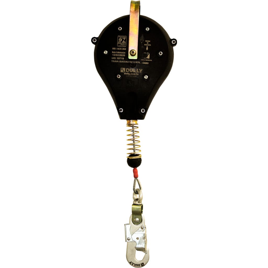 Trava quedas retrátil de cabo aço 03 metros e 06 metros fabricado em caixa de plástico de alta resistência.